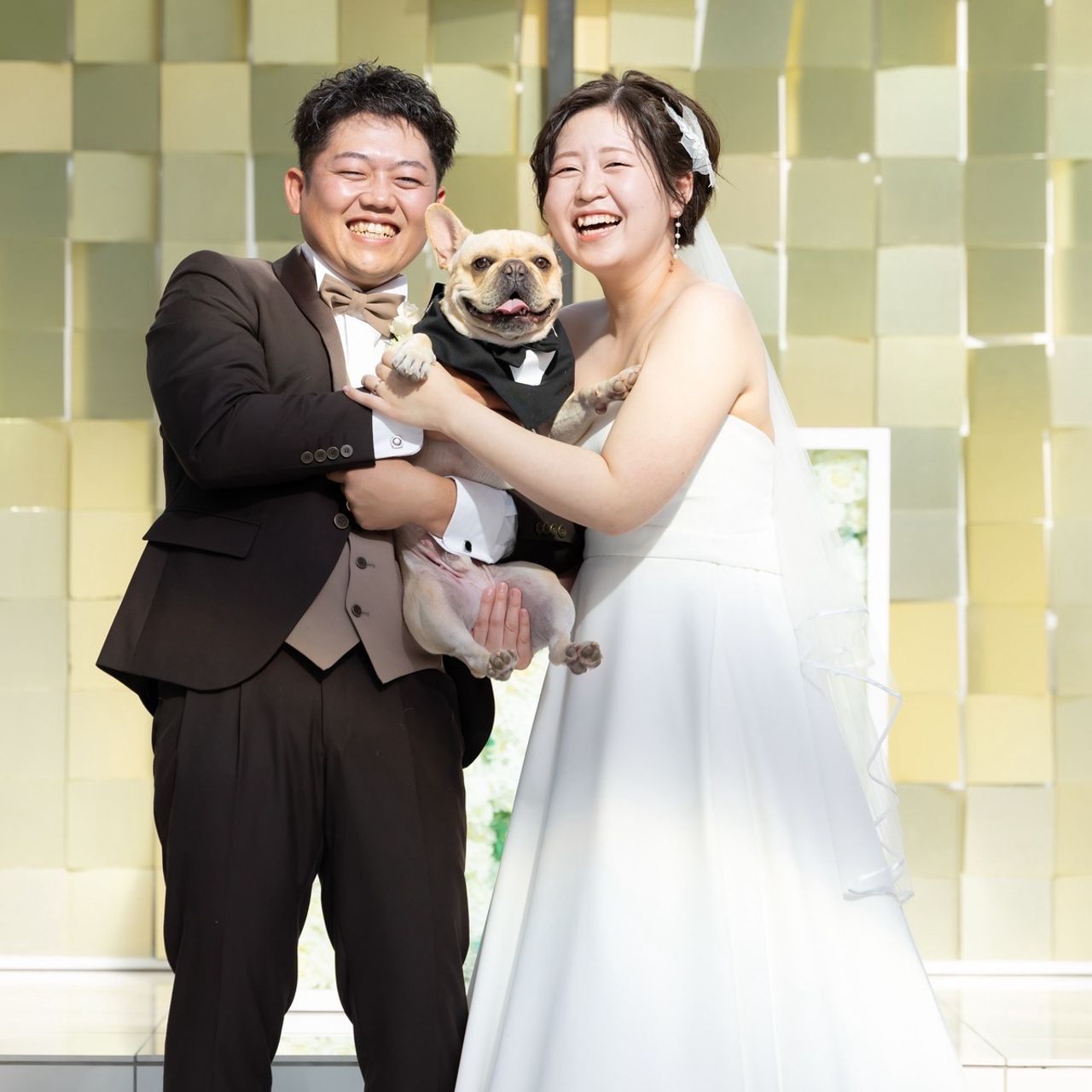 式場の決め手は、1日1組限定で行えることと、チャペルに犬が同伴可能だったこと、担当プランナーさんの話しやすさです。