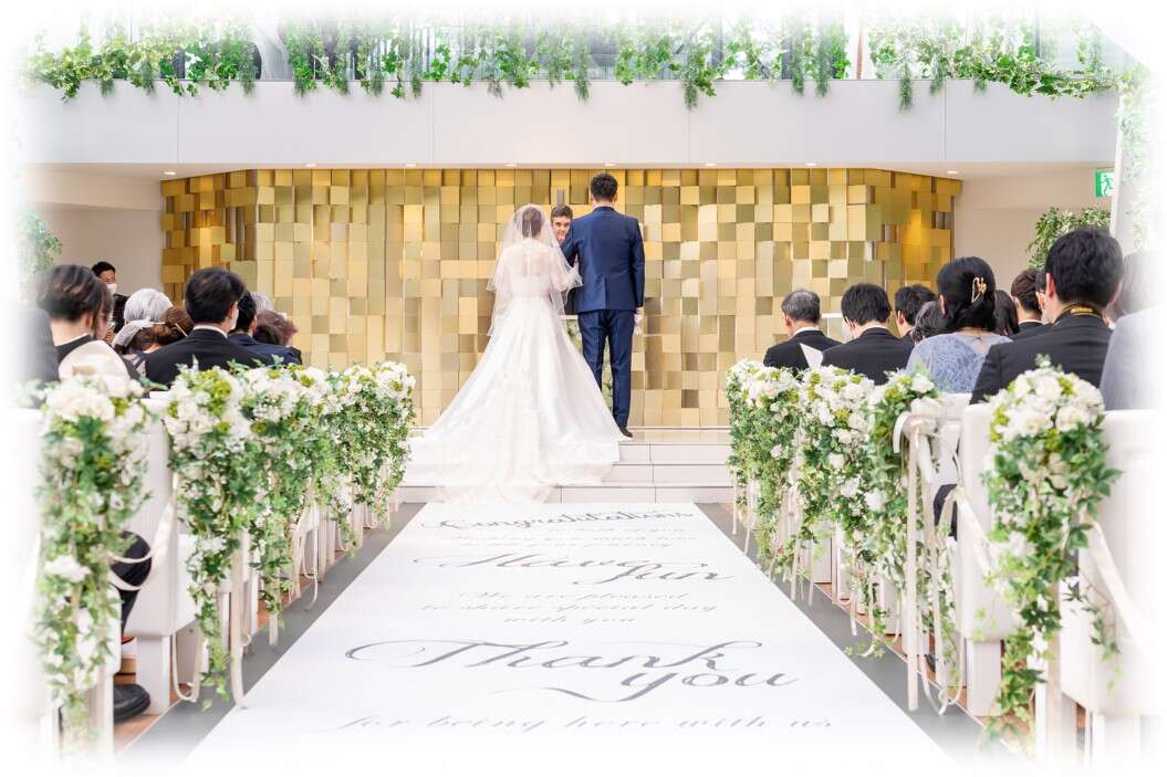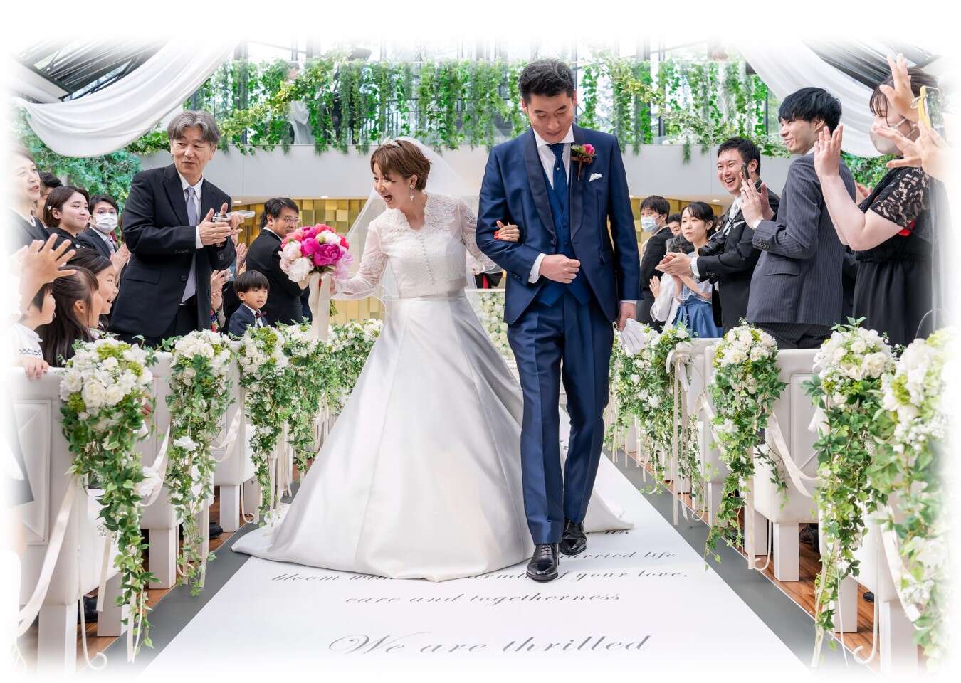 祝福の拍手と笑顔に包まれながらの退場。ゲストの温かな想いに見守られ、幸せいっぱいの挙式となりました。