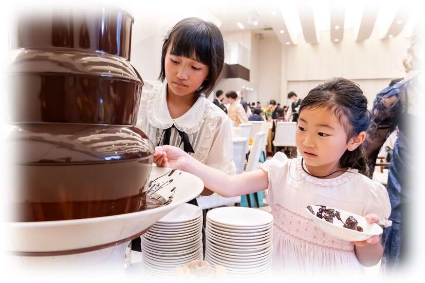 甘い香りに包まれたチョコレートファウンテン。お子さまたちも夢中になり、笑顔あふれる楽しいひとときとなりました。