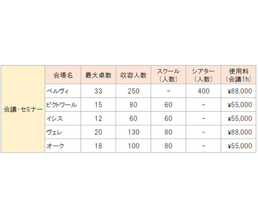 シアター形式のセミナー・会議で利用可能使用する会場は披露宴でも使用している素敵な会場で、人数によって最適な会場を選ぶことができます。