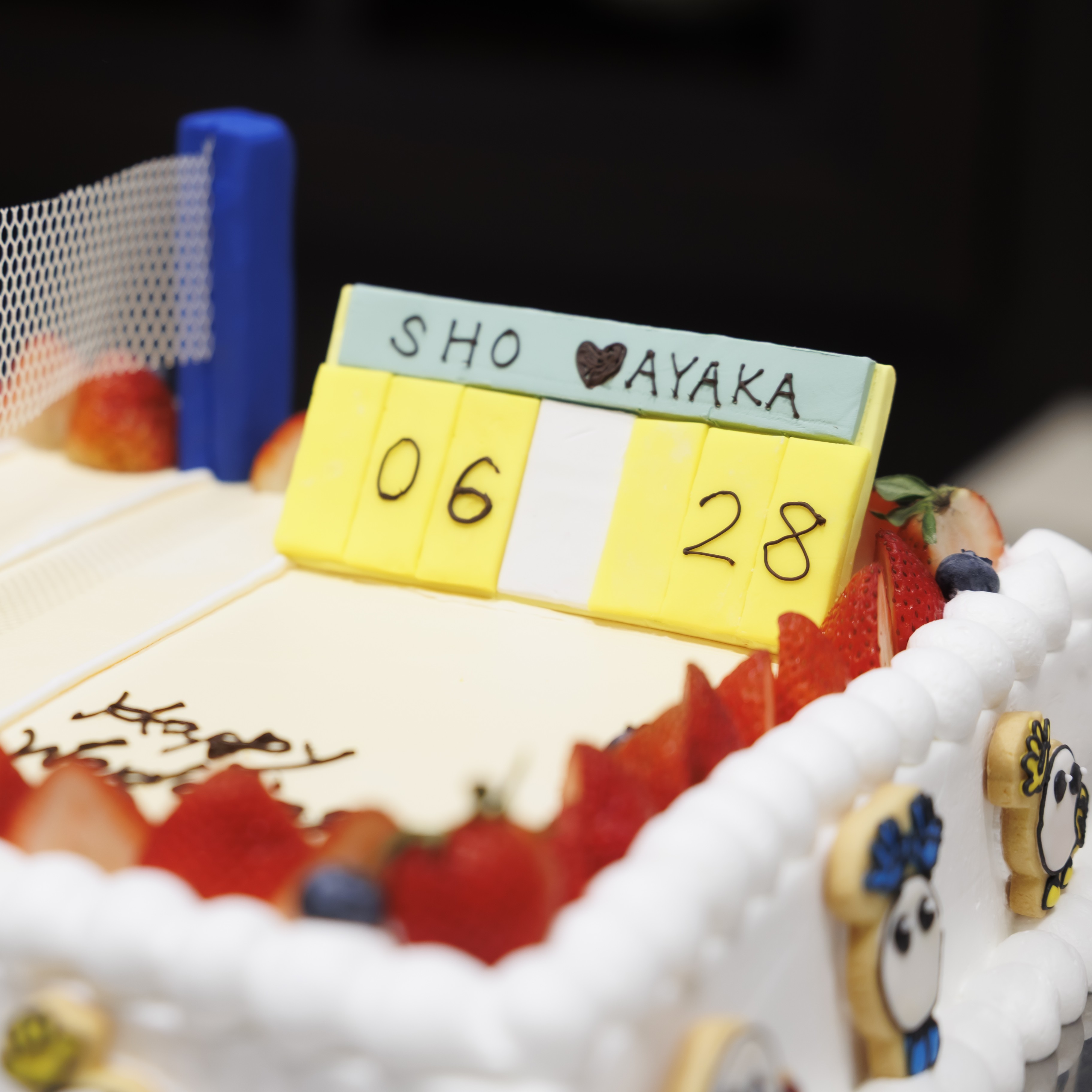 お互いがバレーボールを通じで知り合ったこともあったので、ウェディングケーキもバレーボールのコート・ボール・得点板まで作っていただきました。